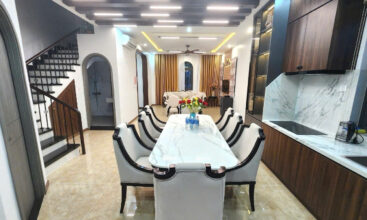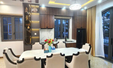 - Phòng khách: Máy lạnh, TV Smart, bàn ăn dài cao cấp.