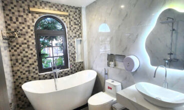 - Sân vườn có bếp nướng BBQ ngoài trời, hỗ trợ loa hát karaoke (cho thuê 300k/đêm).