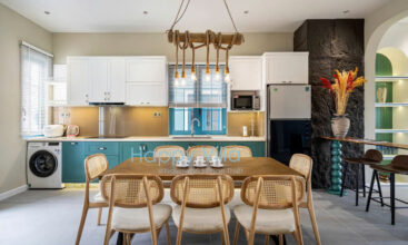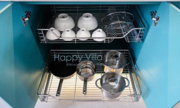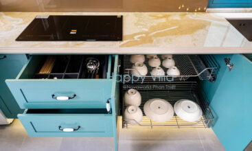 - Bếp: Bếp từ, lò vi sóng, máy sinh tố, nồi chảo, các thiết bị điện tử thông dụng, dụng cụ ăn uống, máy giặt, cây phơi đồ.