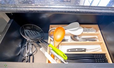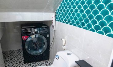 - Bếp: Bếp từ, lò vi sóng, máy sinh tố, nồi chảo, các thiết bị điện tử thông dụng, dụng cụ ăn uống, máy giặt, cây phơi đồ.